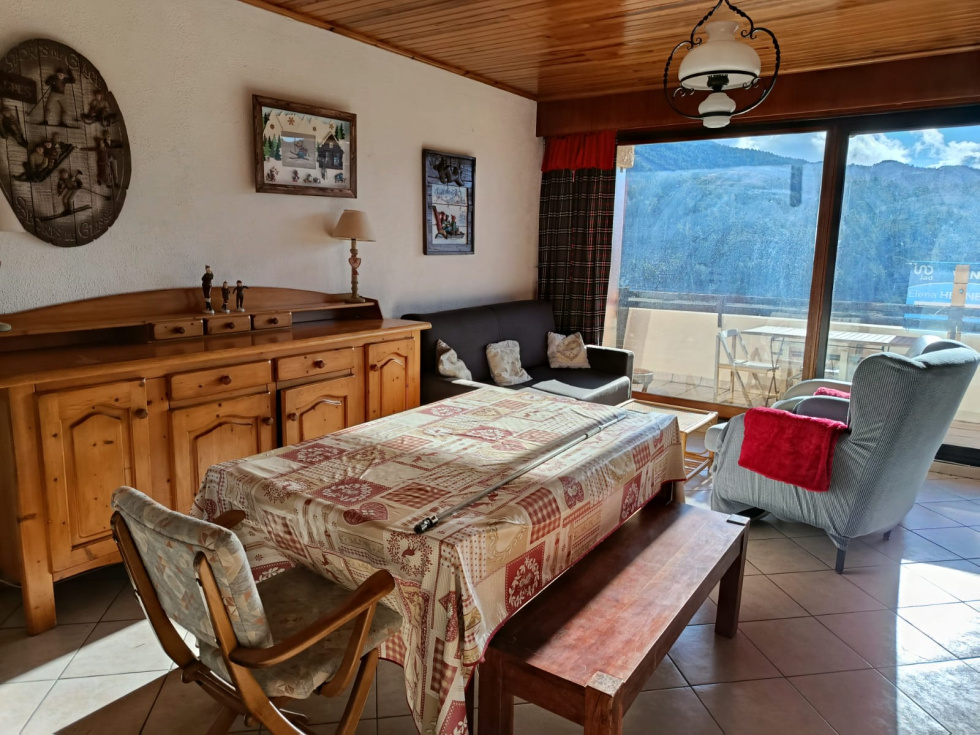 Très agréable 3 pièces face aux pistes au 3ème étage avec ascenseur . Il est composée d'une entrée , d'un séjour avec cuisine américaine , de 2 chambres , d'une salle de bain , et d'une terrasse d'angle .